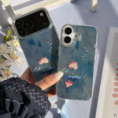 قاب Pink Flower Butterfly با آویز (کدC2116)