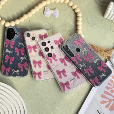 قاب پاپیون صورتی اکلیلی پشت طلق آیفون ، سامسونگ ، شیائومی (کدC1886)