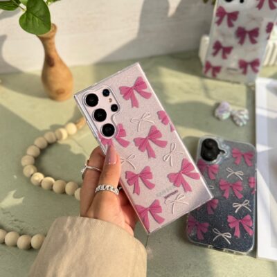 قاب پاپیون صورتی اکلیلی پشت طلق آیفون ، سامسونگ ، شیائومی (کدC1886)