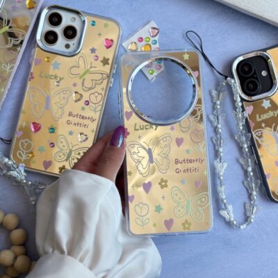 قاب پاپیون سفید آینه ای آیفون و اندروید (کدC2024)