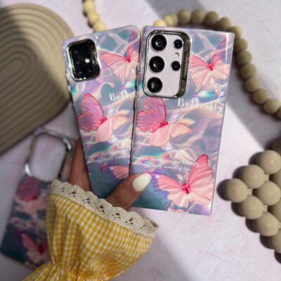 قاب پاپیون صورتی اکلیلی پشت طلق آیفون ، سامسونگ ، شیائومی (کدC1886)