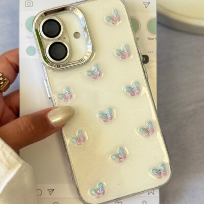 قاب کرومی پروانه و قلب صورتی آیفون و اندرویدی (کدC1825)
