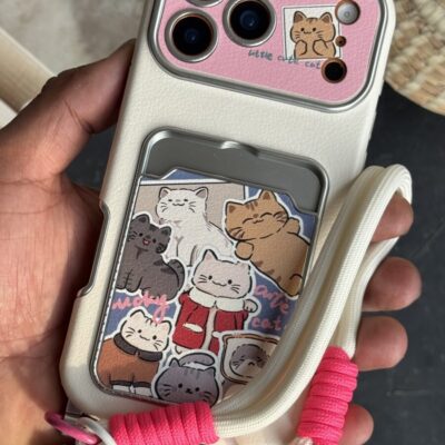 قاب موبایل آیفون گربه اسکاتیش جاکارتی دار + بند و آویزمنگوله ست