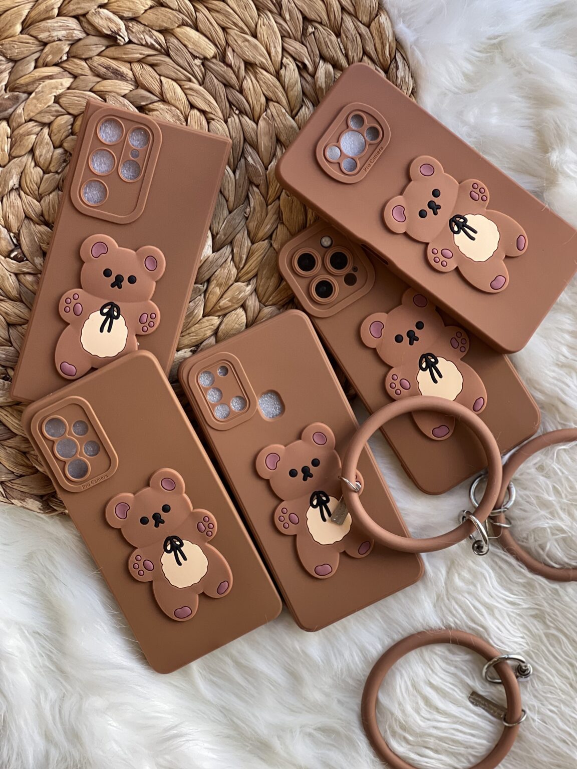 قاب موبایل آیفون خرس برانچ قهوه ای سیلیکونی + حلقه ست
