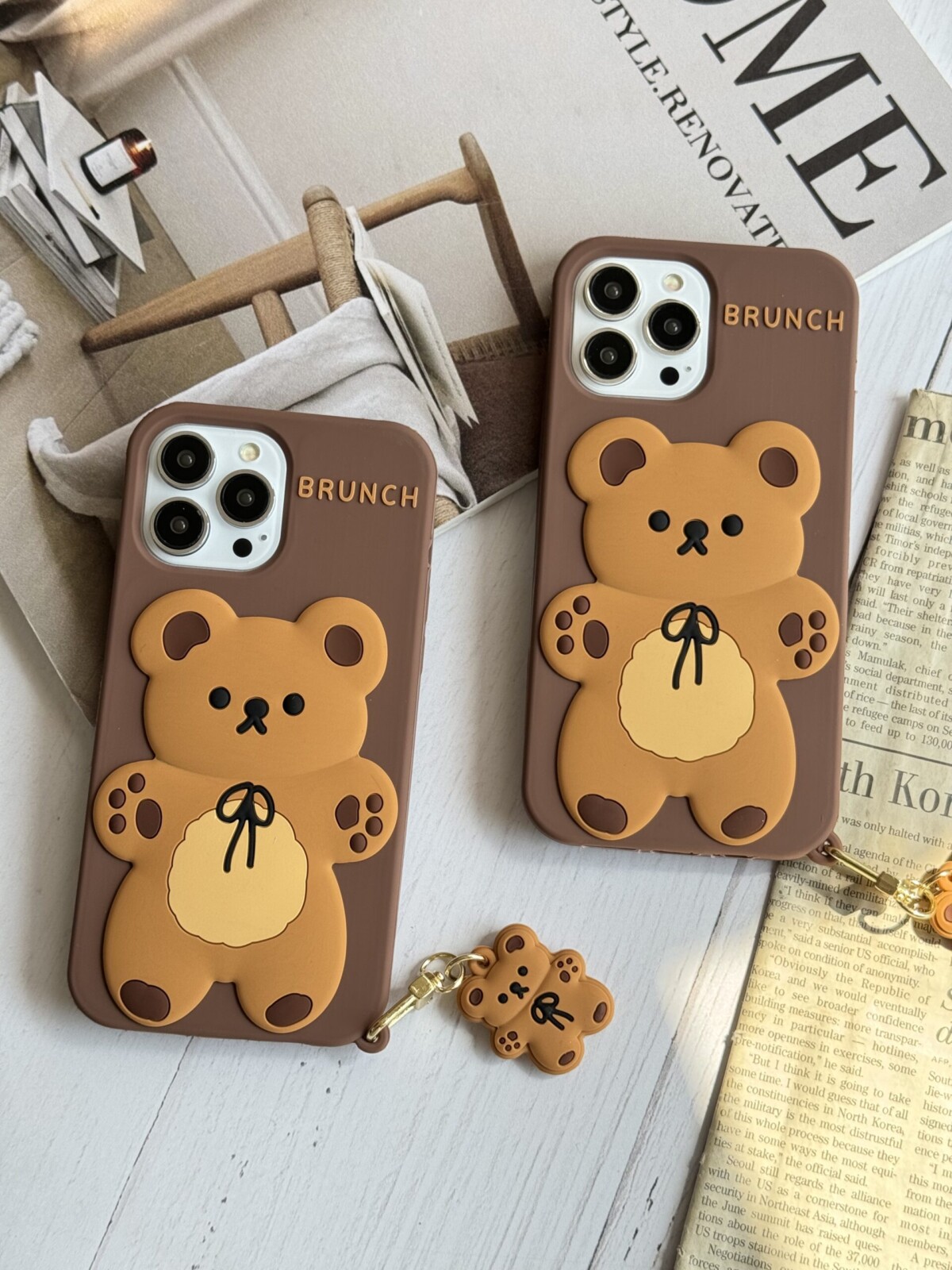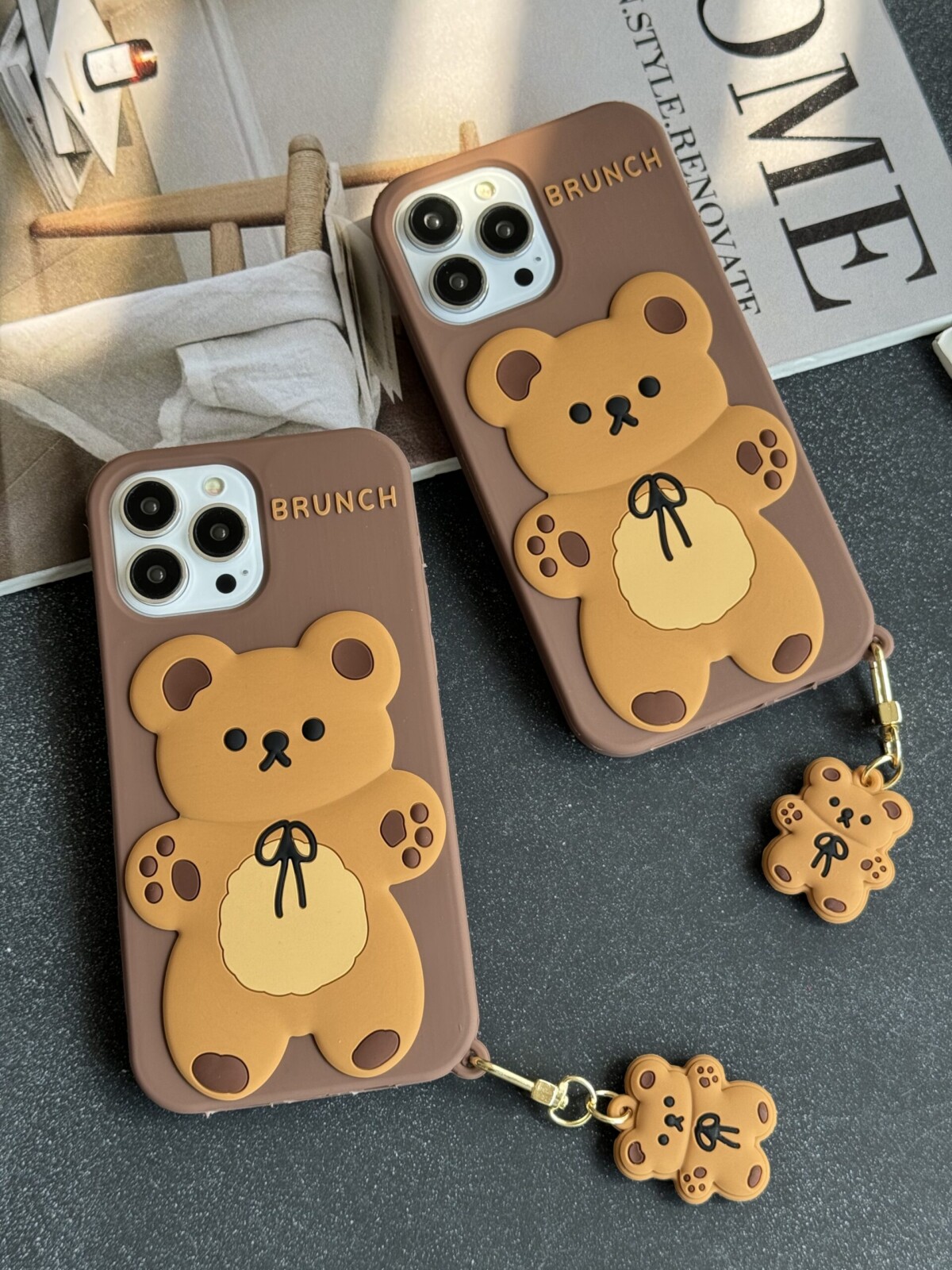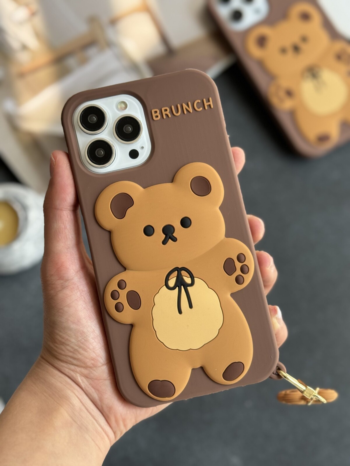 قاب موبایل آیفون خرس قهوه ای مینیمال سیلیکونی + آویز