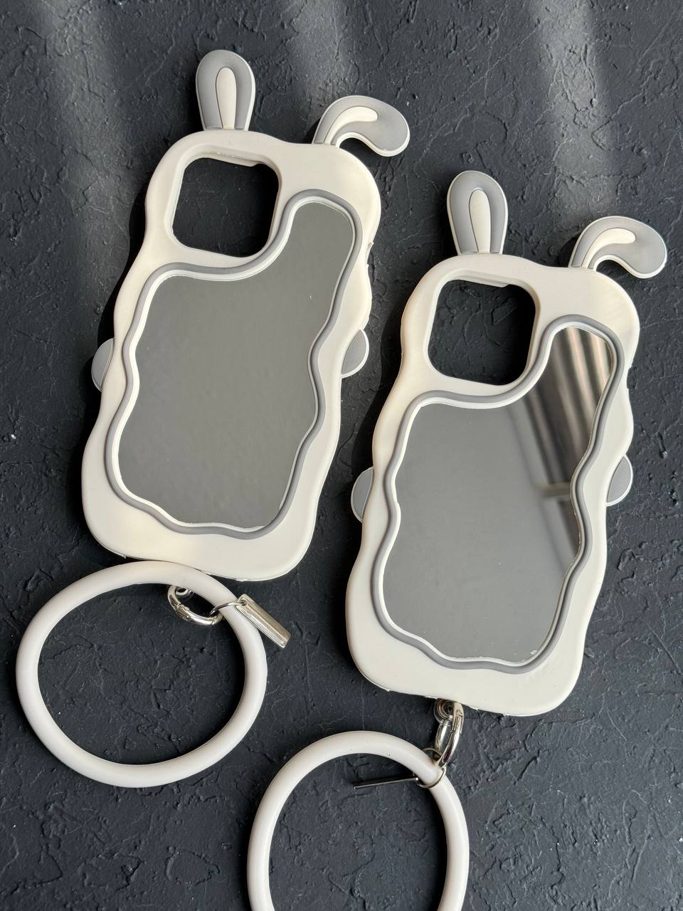 قاب موبایل آیفون خرگوش آینه ای سیلیکونی گوش دار + حلقه ست