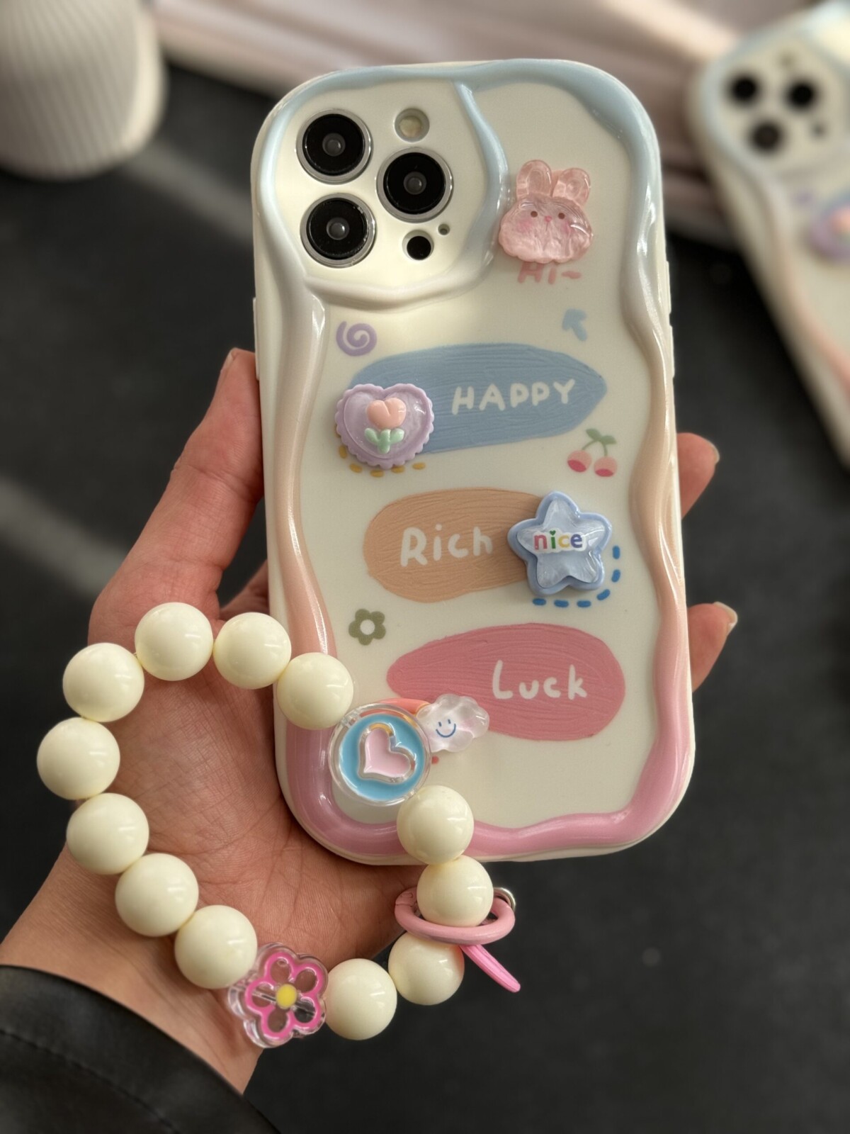 قاب موبایل آیفون خرگوش ستاره خوش شانس رنگ پاستیلی ( بدون بند )