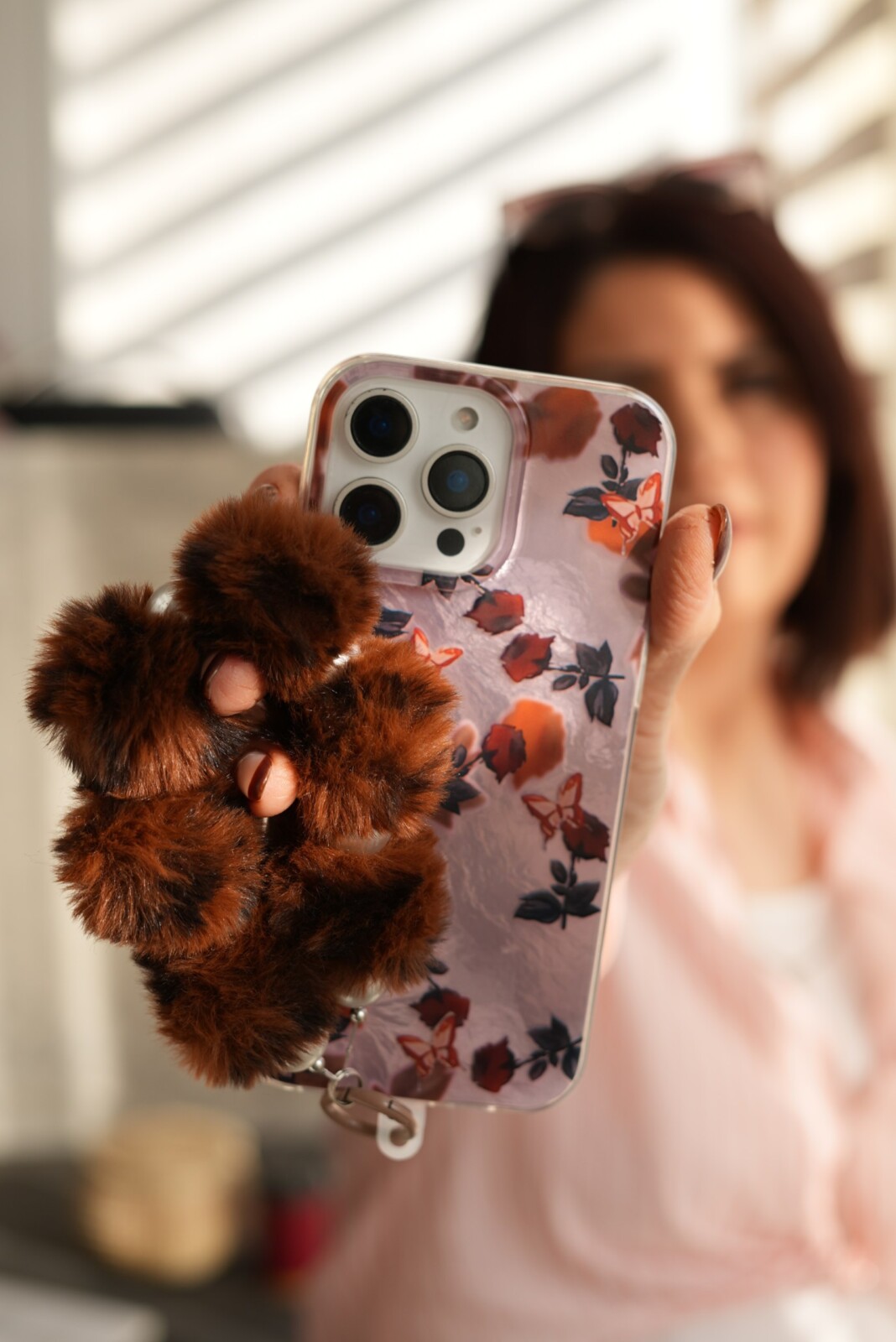 � معرفی محصول: قاب موبایل آیفون سن لورن دم روباهی پروانه گل سرخ بندست پشمی