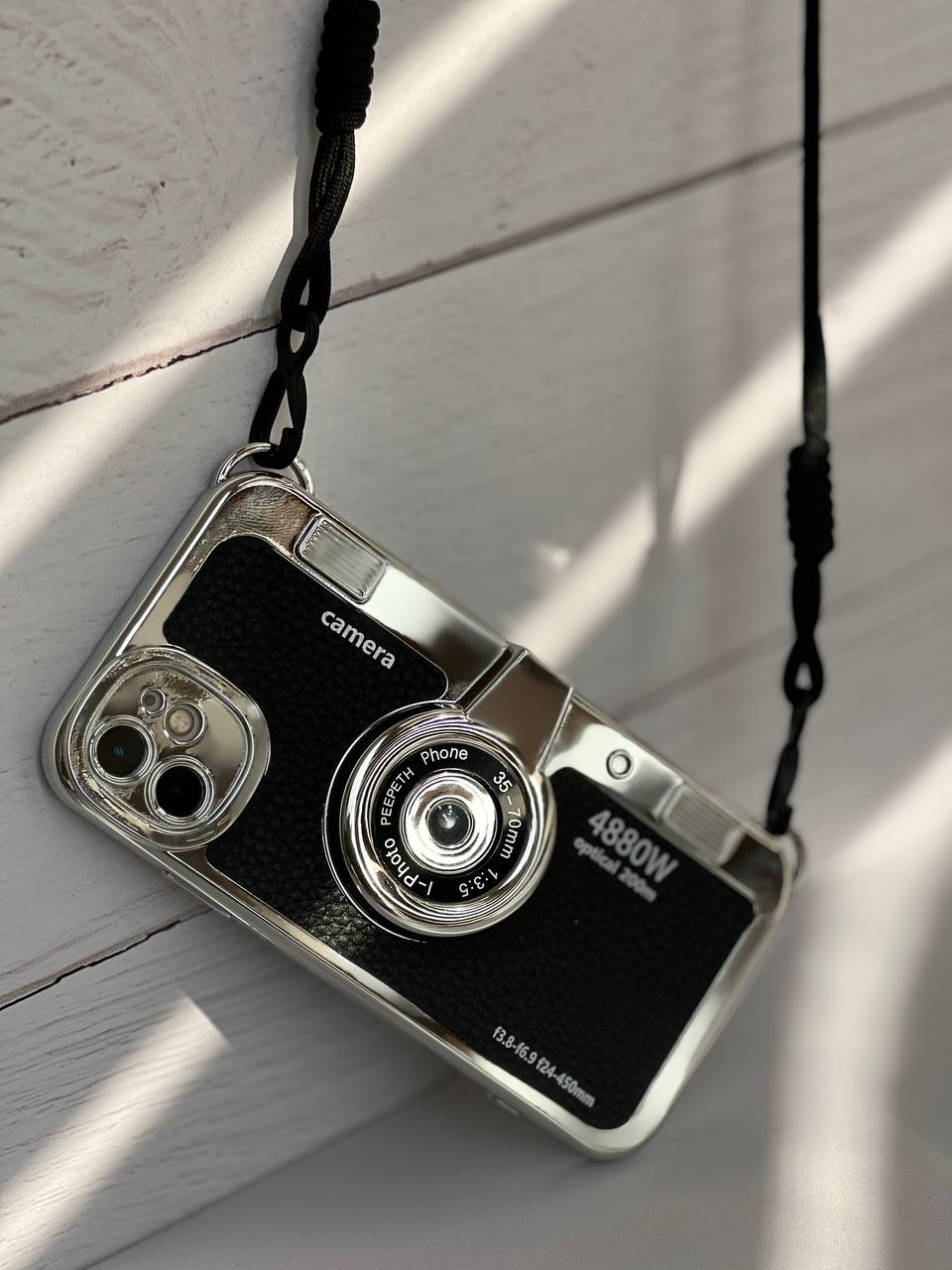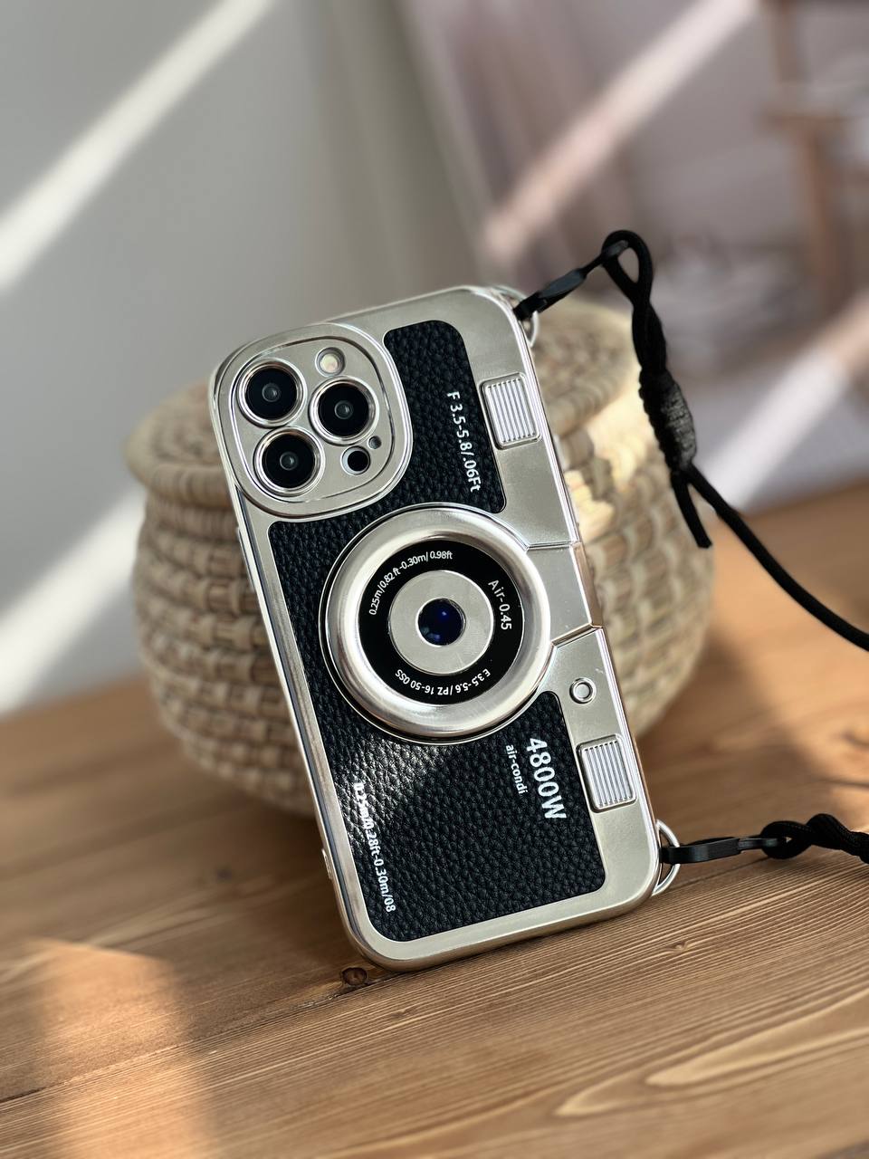 قاب موبایل آیفون دوربین آنالوگ کلاسیک محافظ لنزدار + بند بلند
