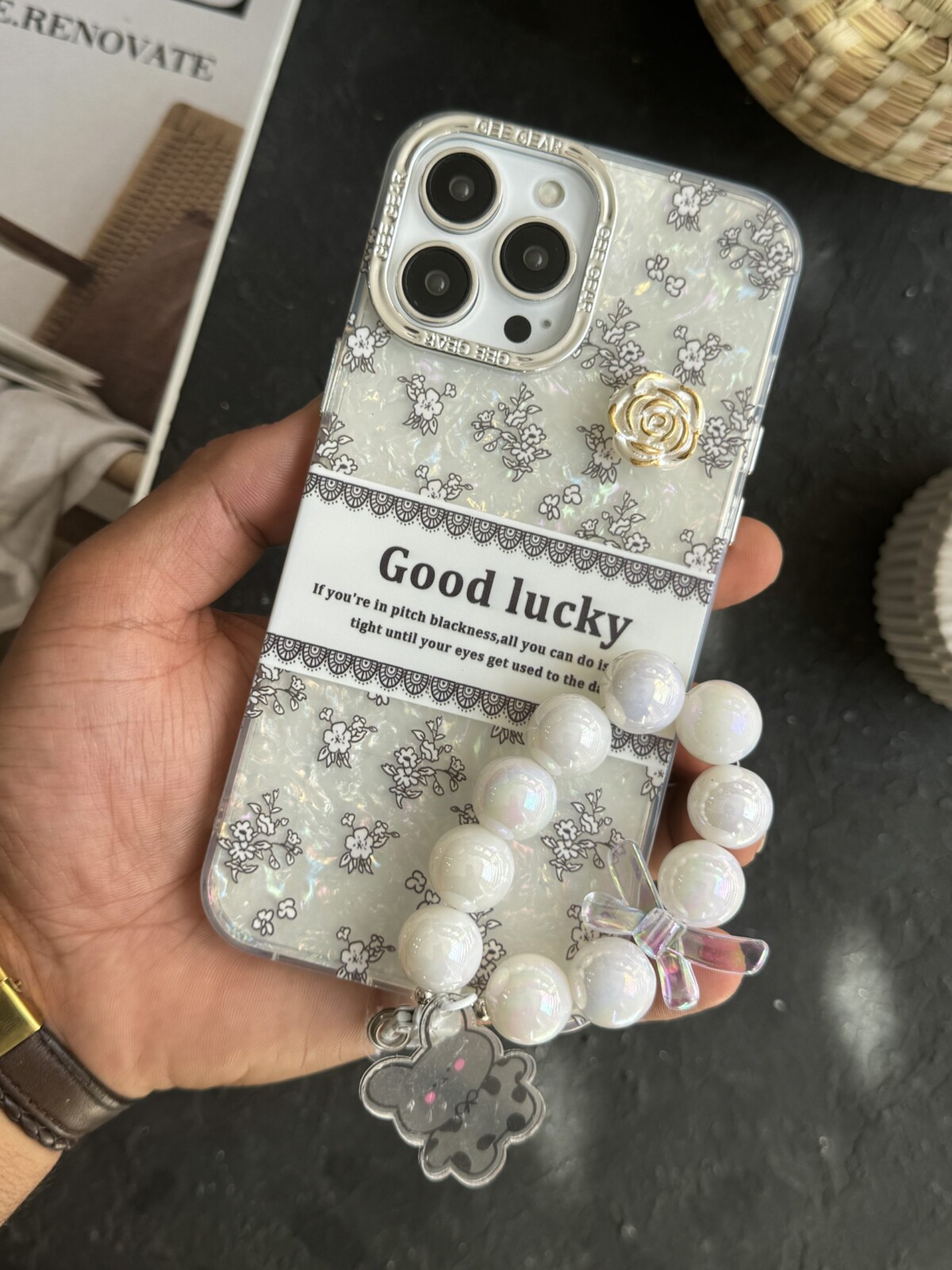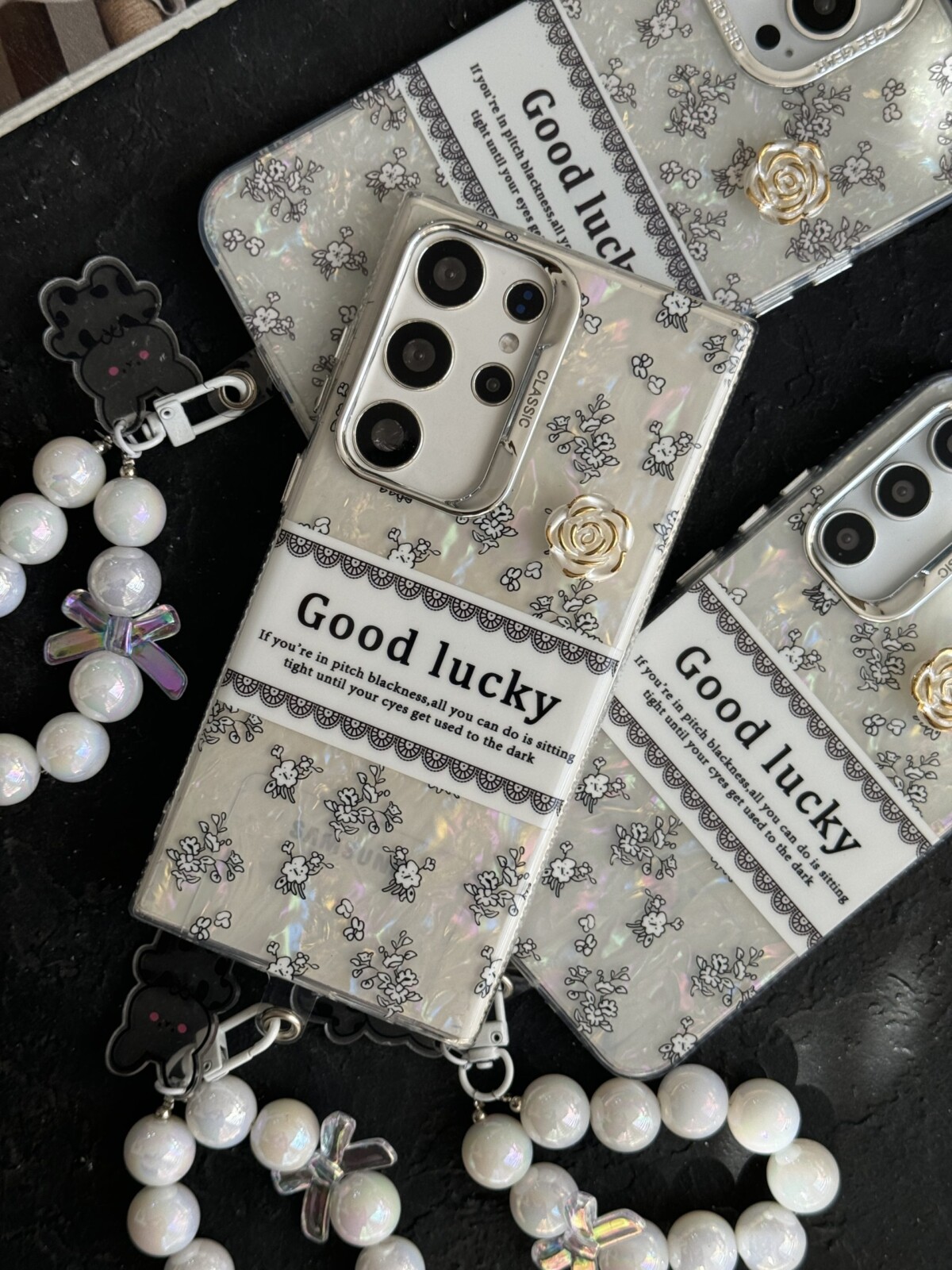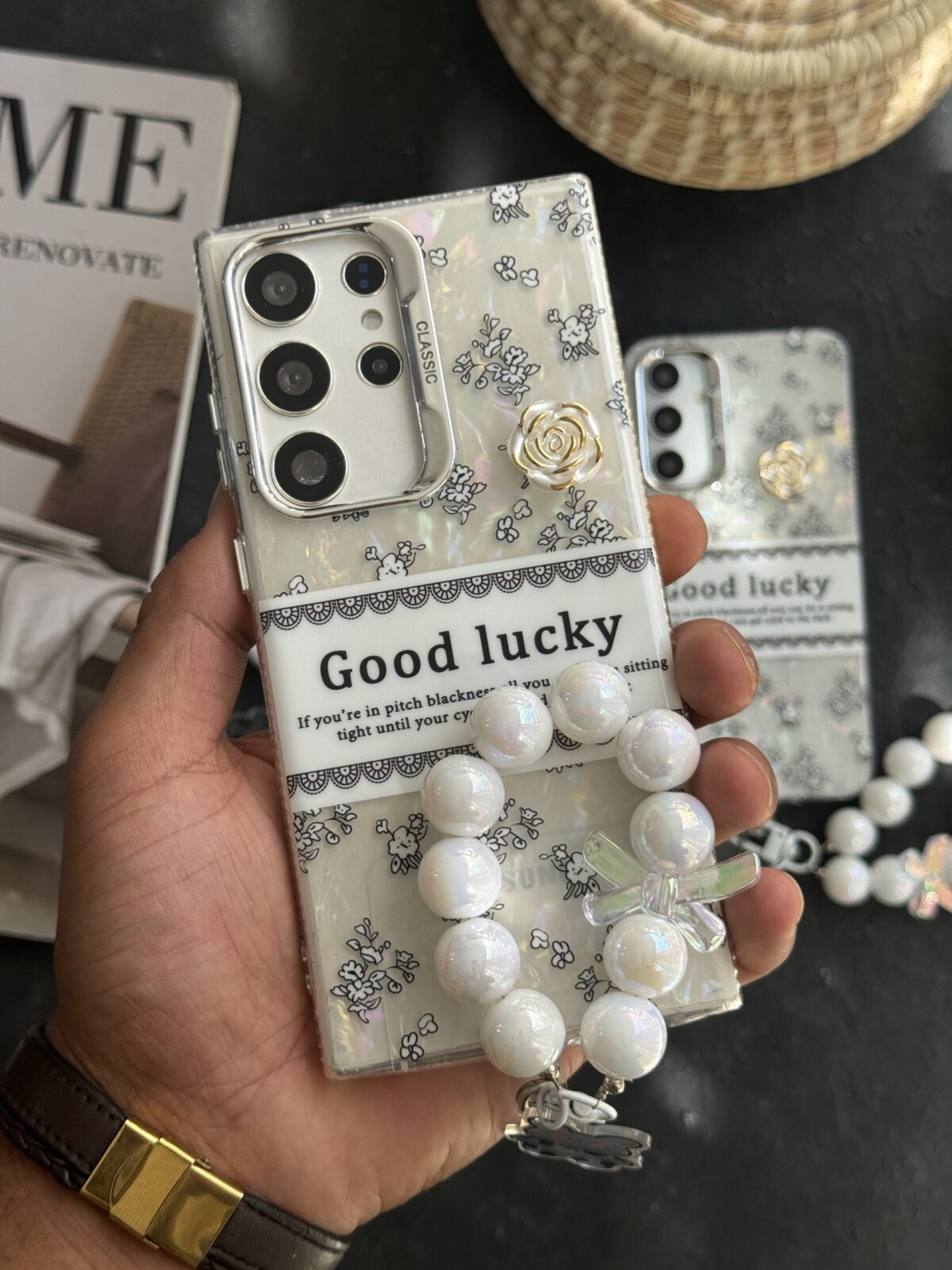 قاب موبایل ( آیفون – سامسونگ – شیائومی ) گل شانس صدفی + بندست