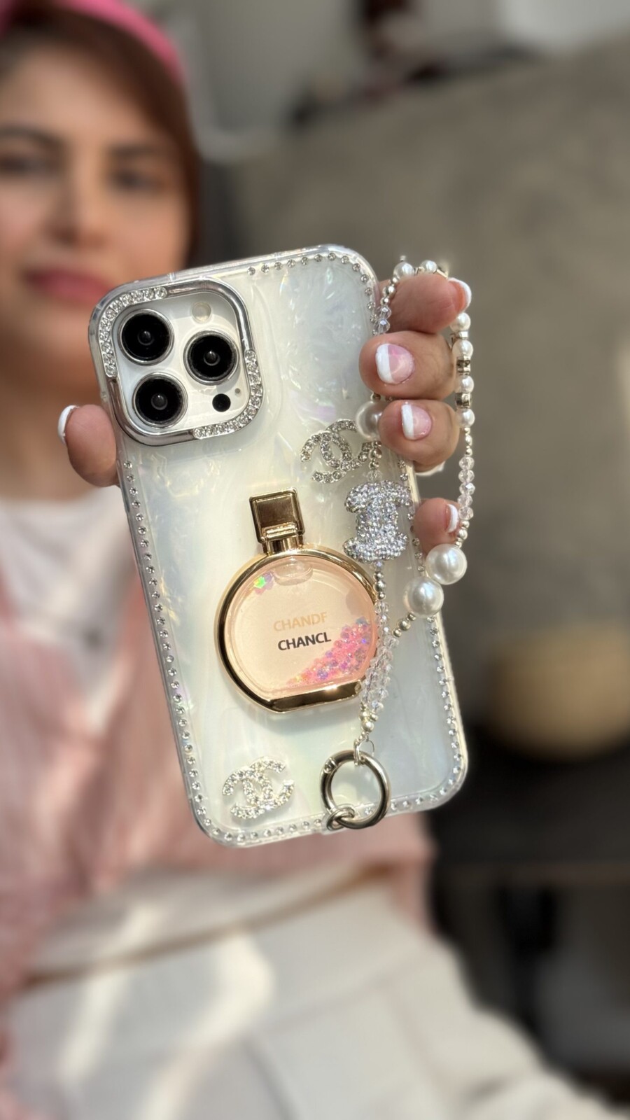 سطح پشتی قاب به شکل بطری پرفیوم طراحی شده که با کریستالهای ریز و نگینهای آکواریومی درخشان تزئین شده است. بخش آکواریومی آن باعث حرکت ذرات رنگی درون قاب میشود و جلوهای زنده و همیشه متفاوت به گوشی شما میدهد. همین ویژگی باعث میشود هر بار که به گوشی نگاه کنید، احساس تازگی و جذابیت بیشتری داشته باشید.