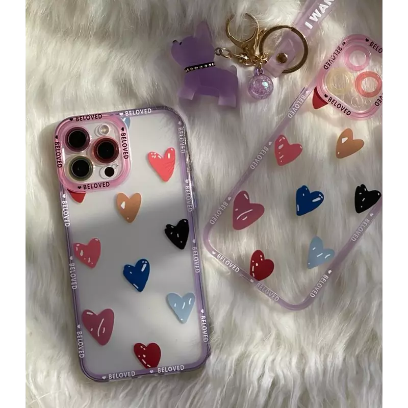 قاب موبایل آیفون پشت بیرنگ قلب مداد رنگی محافظ لنزدار