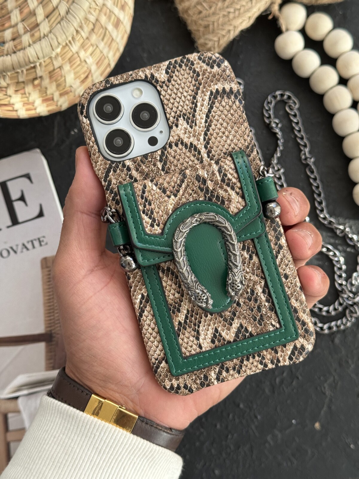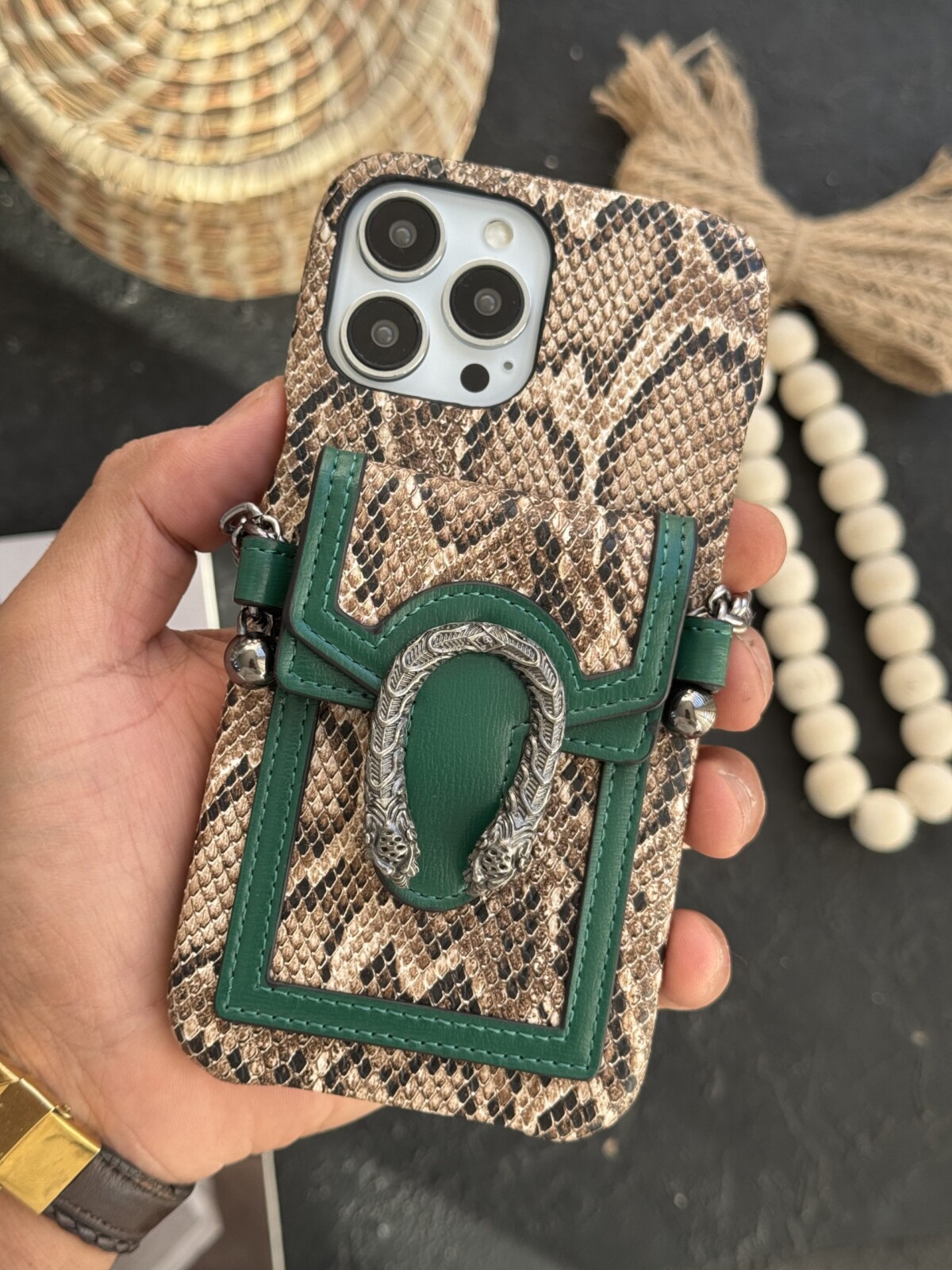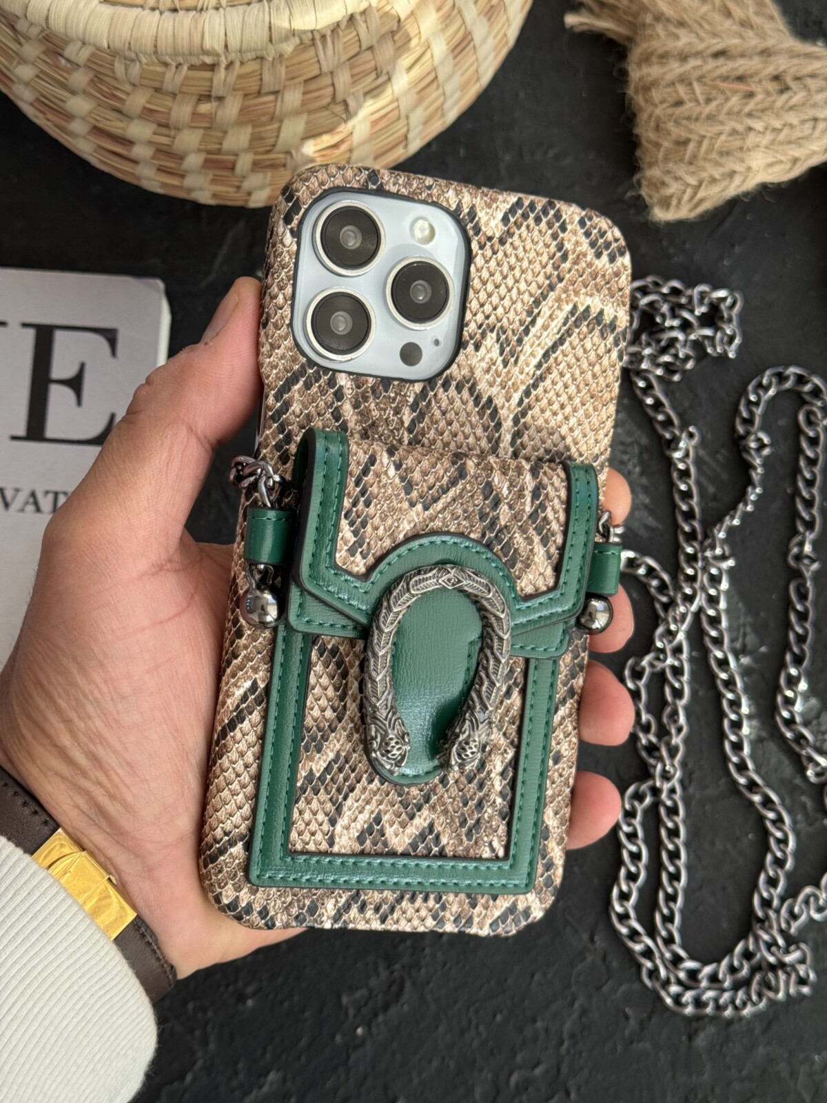 قاب موبایل آیفون پوست ماری پایتون جاکارتی و بند بلند