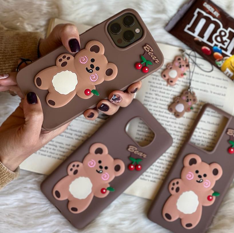 قاب موبایل سامسونگ دبل چاکلت خرس و گیلاس + آویز ست