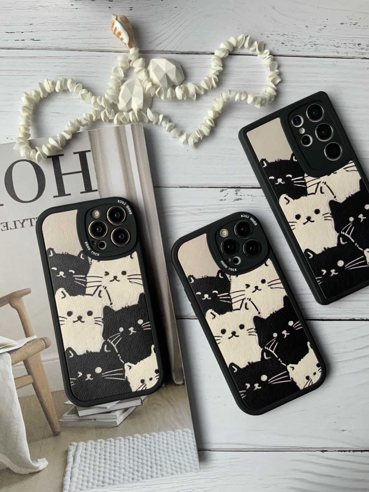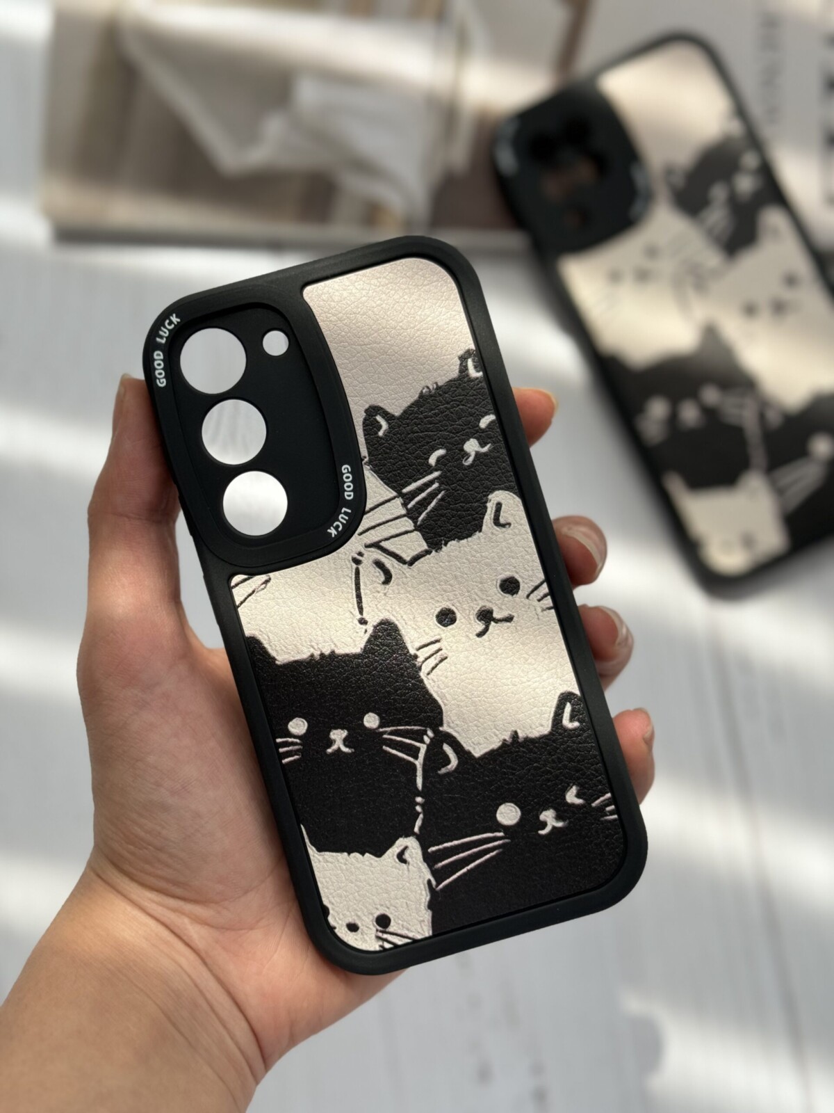 قاب موبایل سامسونگ گربه های کیوت سیاه و سفید محافظ لنزدار