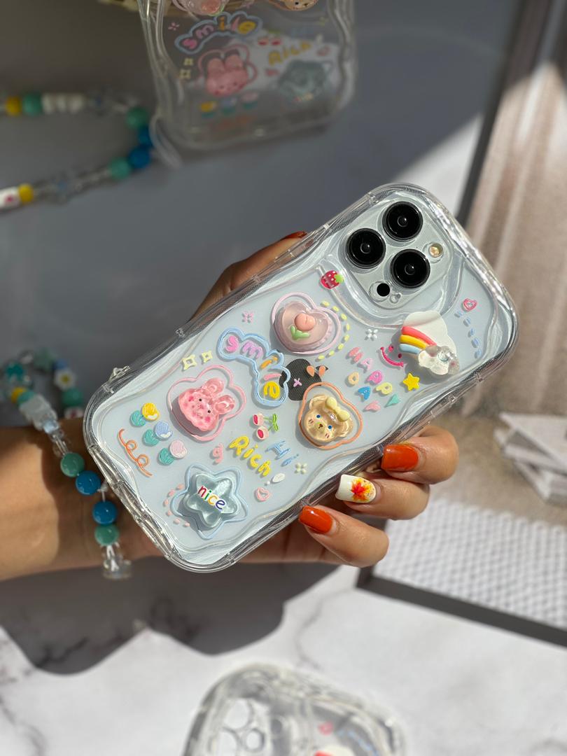 قاب موبایل شیائومی اپوکسی بیرنگ روز شاد خرس و خرگوش برجسته + آویزست