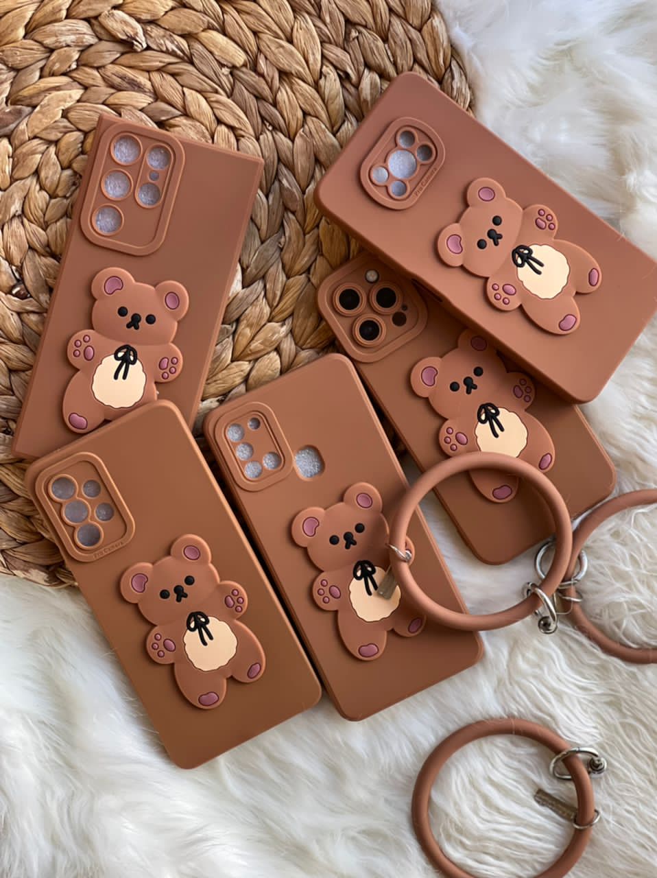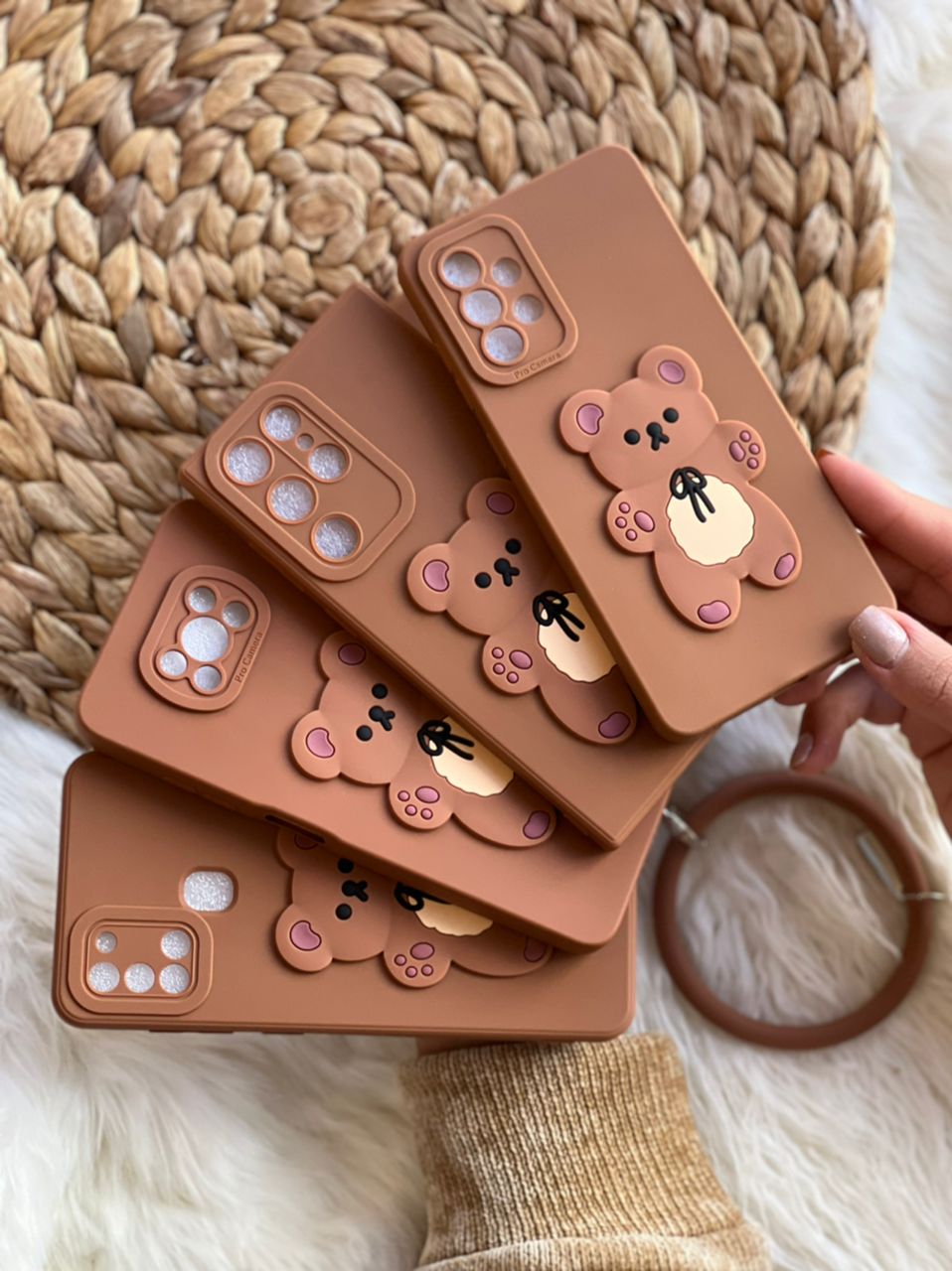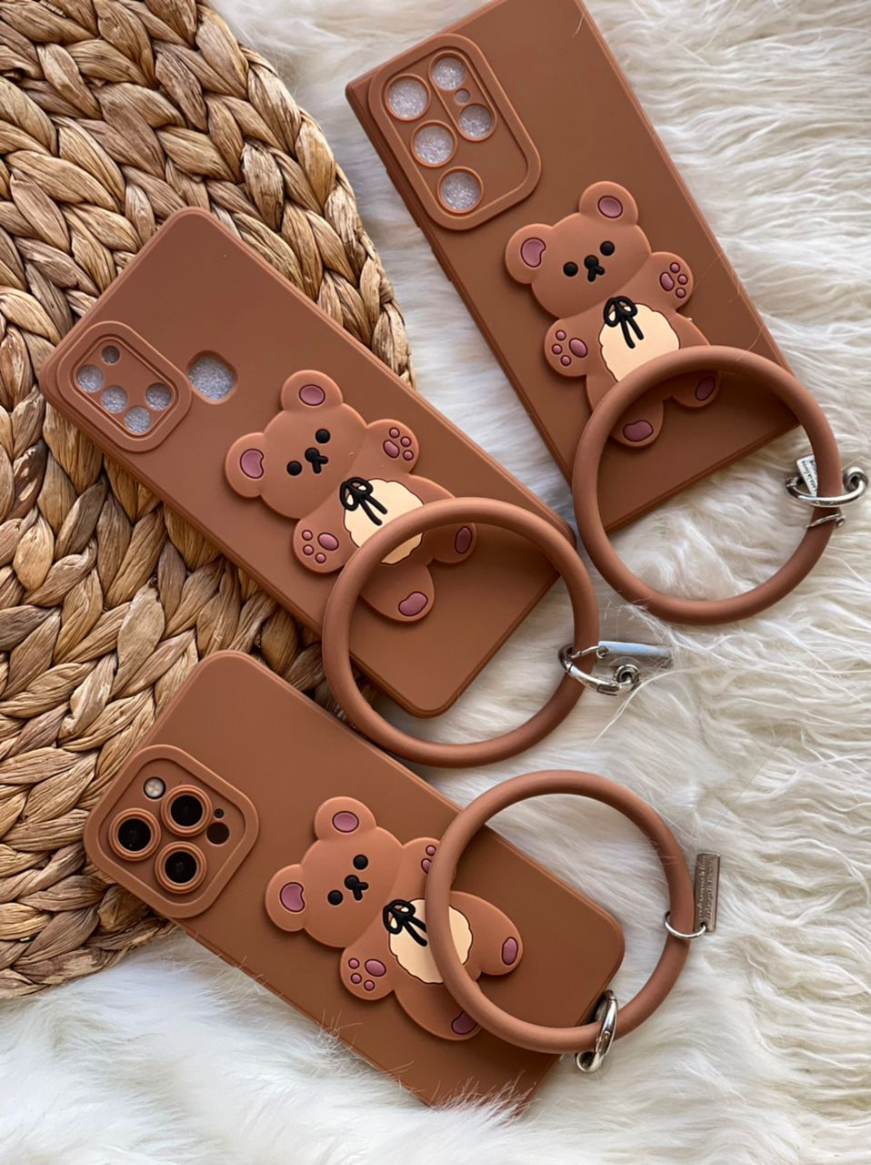 قاب موبایل شیائومی خرس برانچ قهوه ای سیلیکونی + حلقه ست
