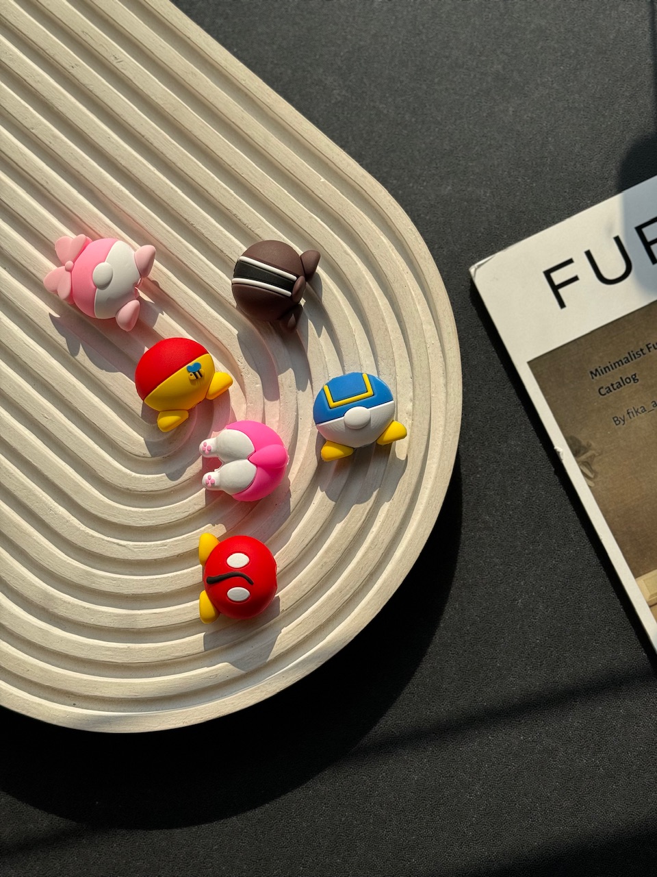 7- میکی موس پسر ,6- اردک پسر آبی ,1-اردک صورتی ,2-پو زرد ,3-ببر نارنجی ,4-آهو قهوه ای بامبی ,5-خوک صورتی |