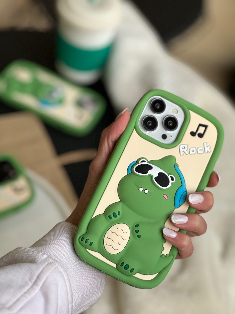 دایناسور سبز سیلیکونی برجسته آیفون / قابگوشی / قاب سیلیکونی سامسونگ / قاب سیلیکونی ردمی شیائومی