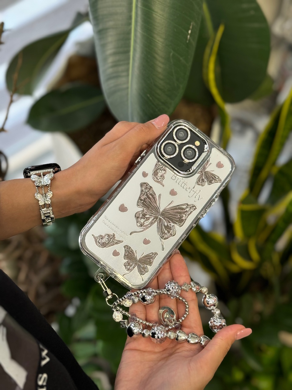 با محافظ لنز نگینی و آویز / قاب آیفون