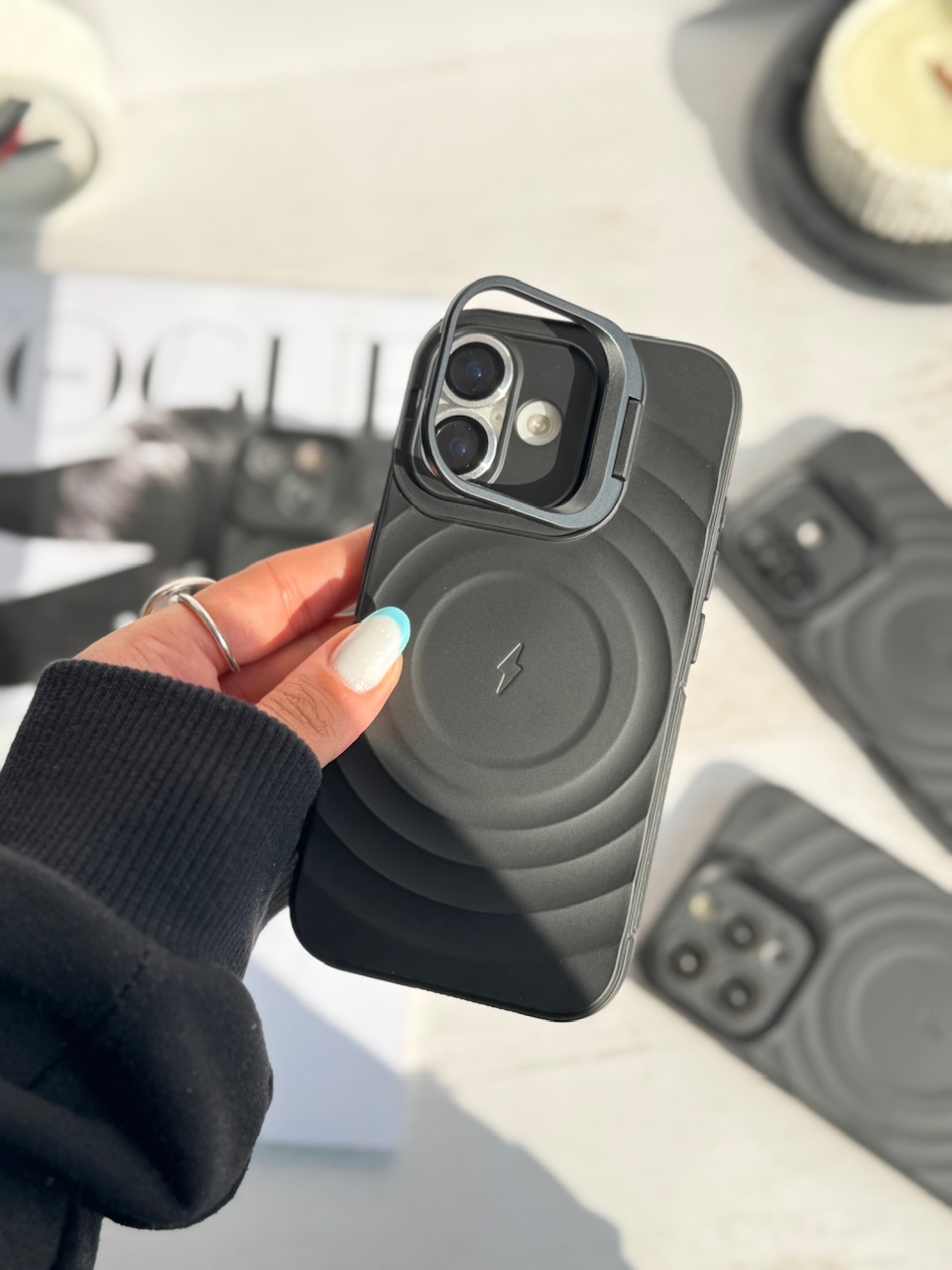 جنس قاب منعطف💠مگ سیف فعال💠لنز استند شو💠محافظت کامل از موبایل💠دکمه های نرم💠کیفیت بالا