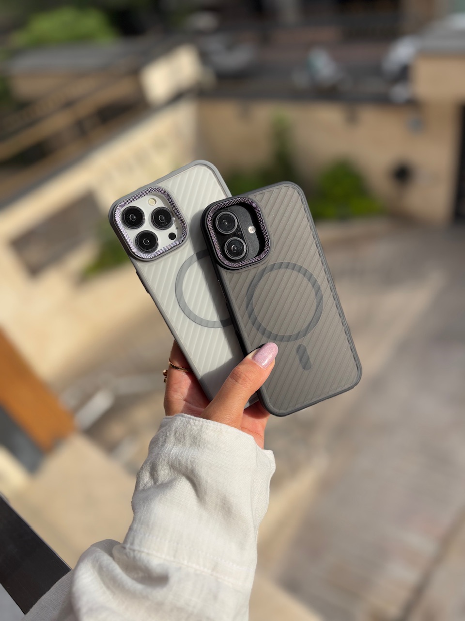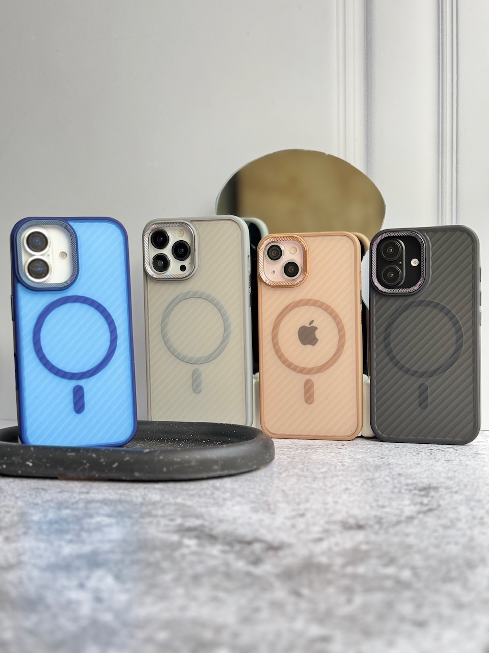 💠لنز کربن شیاردار💠مگ سیف فعال در تمامی مدل ها💠دور لنز و دکمه ها فلزی طرح کربن💠کیفیت اصلی💠مشکی / تیتانیوم / آبی / دیزرت💠دکمه های نرم💠محافظت کامل از گوشی موبایل