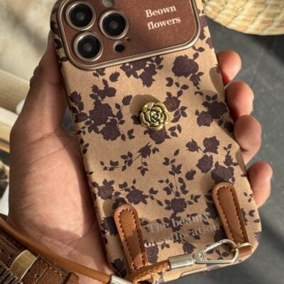 قاب موبایل آیفون گل و برگ پاییزی + بندست