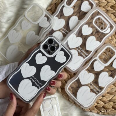 قاب موبایل آیفون بی رنگ قلب سه بعدی