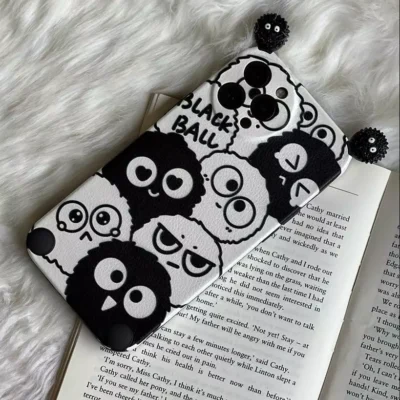 قاب موبایل آیفون هپل گوش دار سیاه و سفید محافظ لنزدار