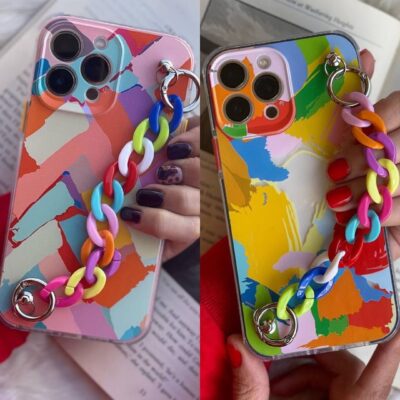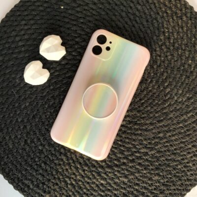 قاب موبایل آیفون رنگین کمانی مینیمال عمودی + پاپ سوکت