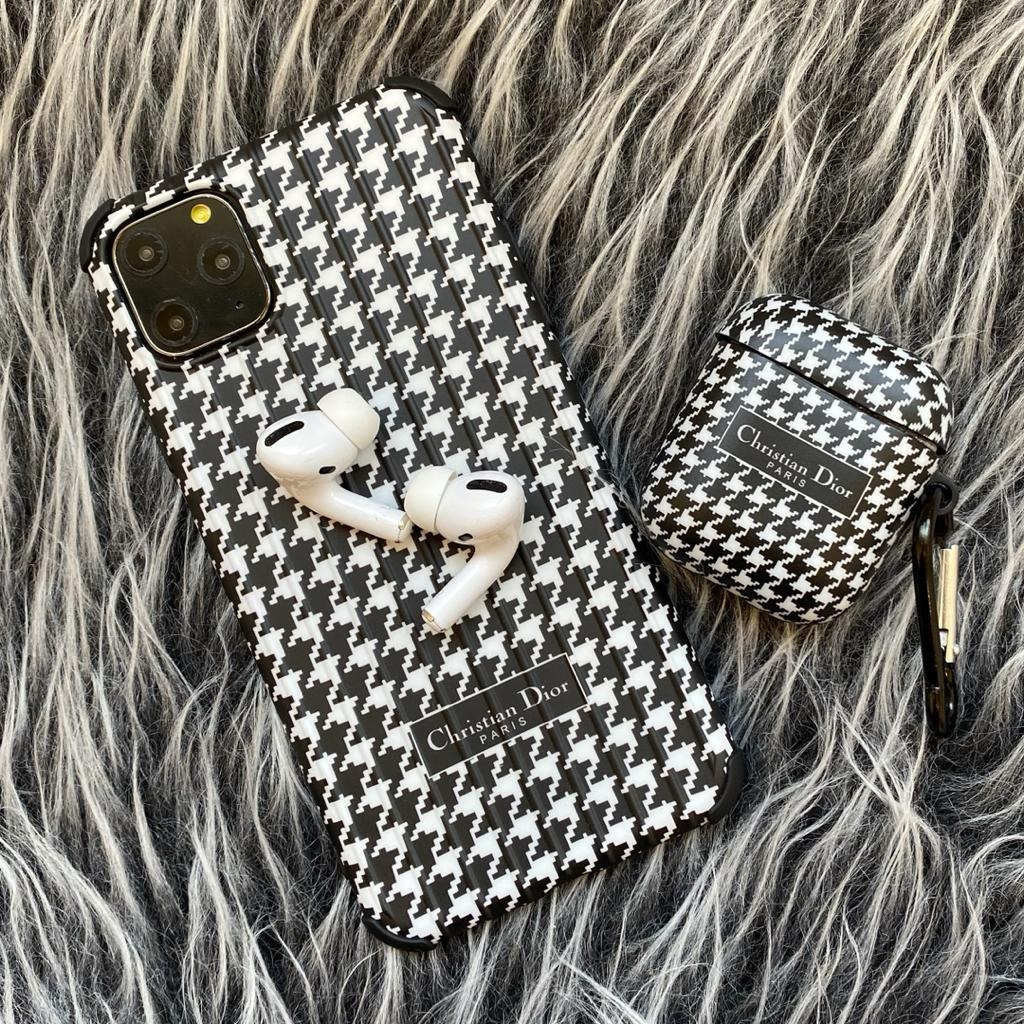 قاب موبایل آیفون گل شطرنجی بالشتی سیاه و سفید
