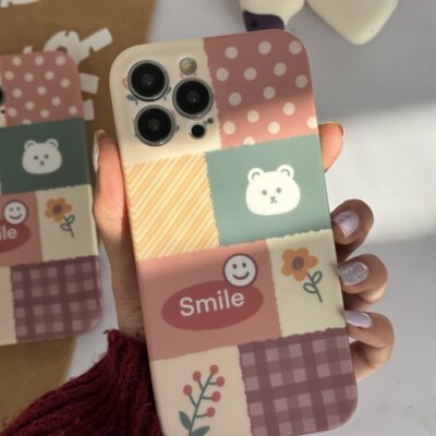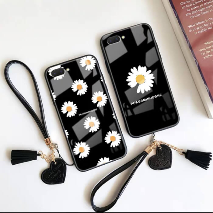 قاب موبایل آیفون بابونه پشت گلس + بند چرمی ست