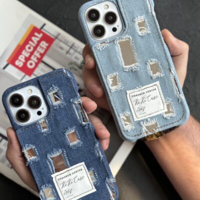 قاب موبایل آیفون جین و پارچه زاپ دار