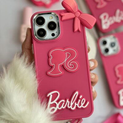 قاب موبایل آیفون باربی پاپیونی صورتی + بند بلند