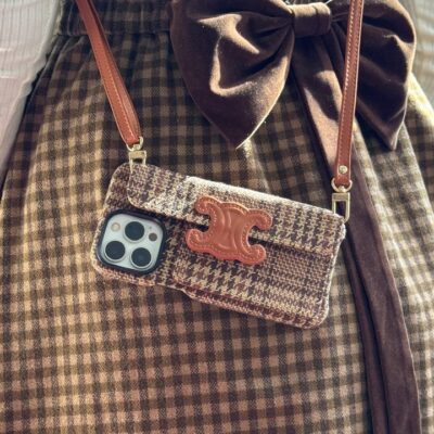 قاب موبایل ( آیفون ) سلین استریپ پارچه ای قهوه ای جاکارتی + بند بلند