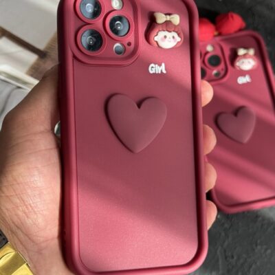 قاب موبایل ( آیفون ) دختر آلبالویی پاپیونی قلب برجسته