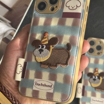 قاب موبایل ( آیفون ) کیوت پاپی خال خالی داکس هوند سوسیسی ( بدون بند )