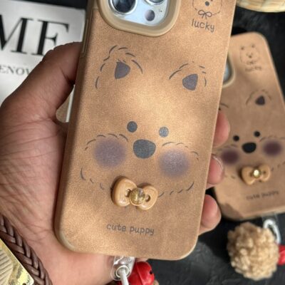 قاب موبایل( آیفون ) سگ بیگ فیس پاپی پاپیون برجسته + زنگوله پشمالو