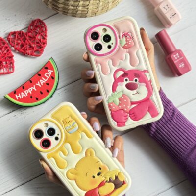 قاب موبایل آیفون برجسته خرس لوتسوهاگین و خرس پو محافظ لنزدار