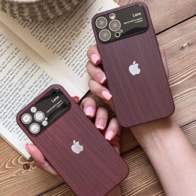 قاب موبایل آیفون کلاسیک طرح چوب و شیشه محافظ لنزدار